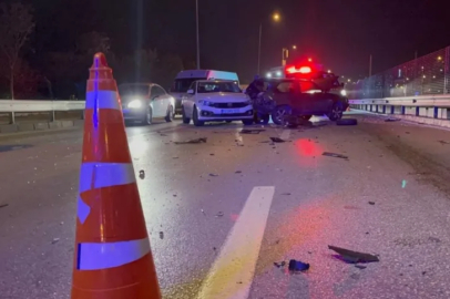 Bursa'da direksiyon hakimiyeti kaybedilen araç, önündeki 3 otomobile çarptı. Yaşanan kazada yaralanan olmazken, trafik bir süre tek şeritten ilerledi.