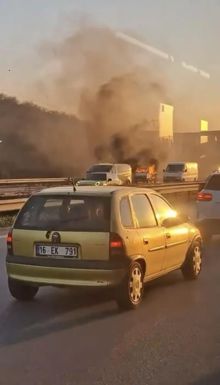 Bursa çevre yolunda seyir halindeki hafif ticari araç alev aldı. Yangın, itfaiye ekiplerinin müdahalesiyle söndürüldü.