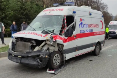 Kazada ambulans sürücüsü ile bir sağlık görevlisi hafif yaralandı.