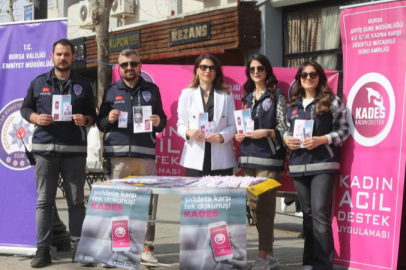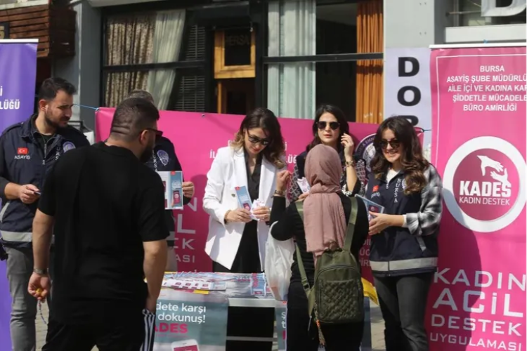 Bursa'da kadına yönelik şiddetin önüne geçilmesi hedefiyle kent merkezinde stant kuruldu. Stantlarda eğitim veren polis ekipleri cadde cadde, sokak sokak dolaşarak vatandaşların telefonuna KADES uygulaması indirip suç oranlarının azalmasını hedefliyor.