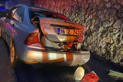 Bursa'da kontrolden çıkan otomobil bariyere çarptı