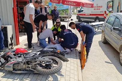 Bursa'nın İnegöl ilçesinde otomobil ile çarpışan motosiklet sürücüsü yaralandı. Kaza anı bir işyerinin güvenlik kamerasına saniye saniye yansıdı.