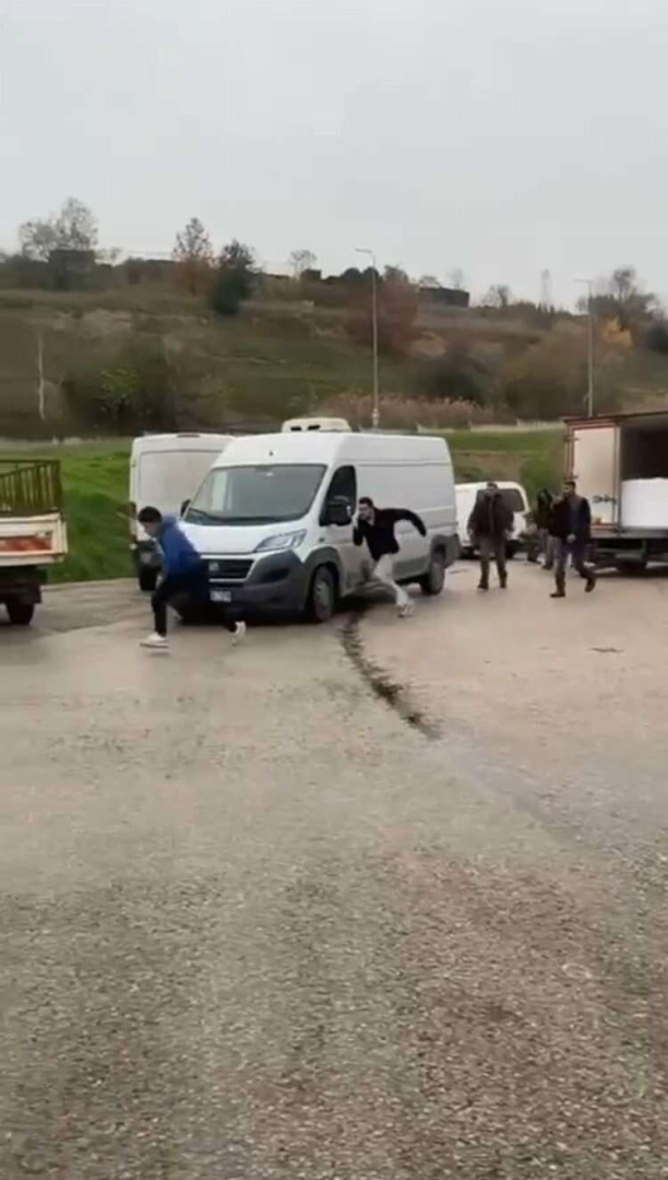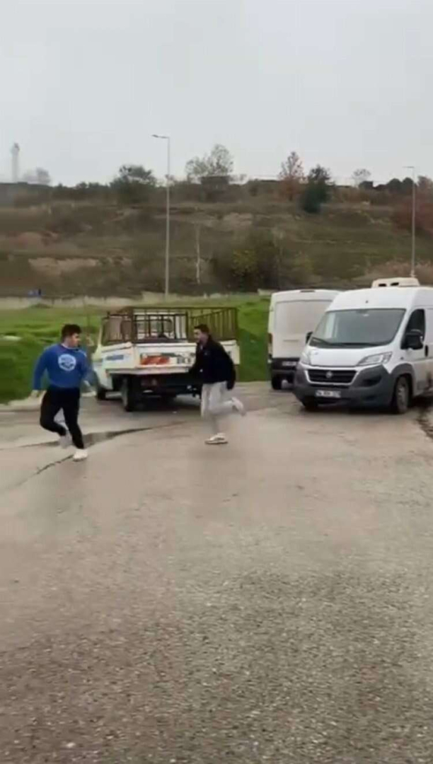 Bursa’nın Nilüfer ilçesinde bulunan bir balık halinde iki kişi arasında tartışma çıktı. Kısa sürede büyüyen tartışma yerini kavgaya bırakınca, şahıslardan biri hızla kaçmaya başladı. Bunun üzerine taraflardan diğeri ise kaçan şahsı kovalayıp yakaladı. Arka arkaya yumruk atan kişi, şahsı bir süre darp ettikten sonra bıraktı. O anlar kameraya anbean yansıdı.