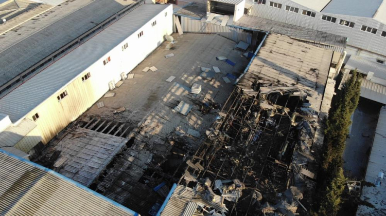 Yangın nedeniyle fabrikanın büyük bir bölümü enkaza dönüşürken, günün ilk ışıklarıyla birlikte fabrikanın gökyüzünden dron ile çekilen görüntülerinde zararın boyutu da belli oldu. Yangın sonrası oluşan tahribat havadan görüntülendi. Olay yeri inceleme ve bilirkişi heyetinin tahkikatı devam ediyor.