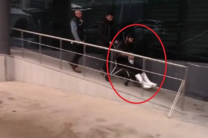 2 ayağını birden kıran şüpheli, önce hastaneye ardından da tekerlekli sandalye ile adliyeye götürüldü.