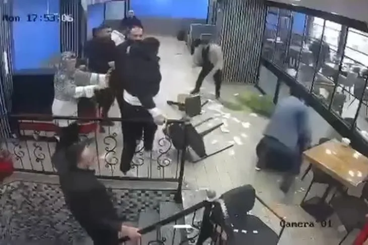 Bursa’nın Osmangazi ilçesine bağlı Emek Mahallesi’nde bulunan bir kafede, henüz bilinmeyen bir nedenle çıkan tartışma kısa sürede büyüyerek kavgaya dönüştü. Tarafların birbirine sandalye ve masalarla saldırdığı kavgada mekân adeta savaş alanına döndü.