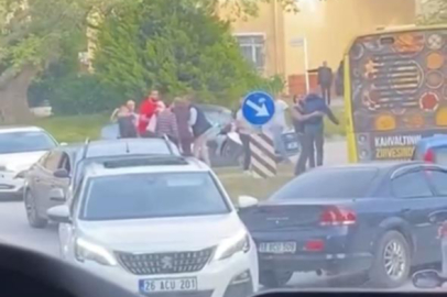 Bursa'da trafikte tartışan 2 sürücü, araçlardan inerek kavga etmeye başladı. Sürücülerin kavgası sokağı boks ringine çevirirken, kavga diğer sürücüler tarafından güçlükle ayırıldı.