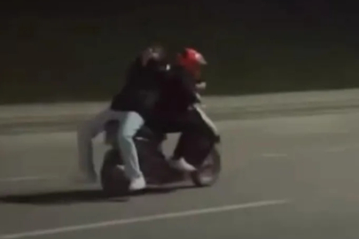 Bursa'da ters şeritte ilerleyen motosiklet sürücüsü, arkasına da yolcu aldı. Yolcu ise, motosiklete ters bindi. Tehlikeli anlar amatör kameraya yansıdı.