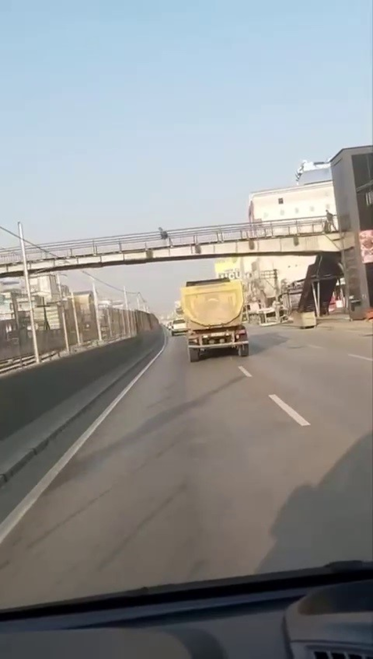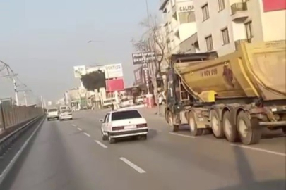 Sürücüsü henüz öğrenilemeyen kamyon, bir anda makas atmaya başladı.