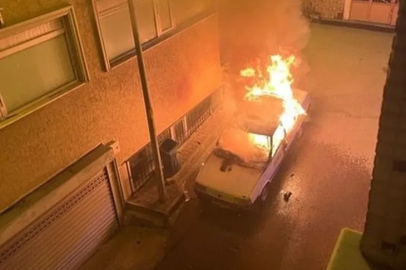 Bursa'nın Osmangazi ilçesinde eski model araç alev alev yandı. Balkonda olan bir vatandaş ise aracın üzerine pet şişeyle su döktü. O anlar kameraya anbean yansıdı.