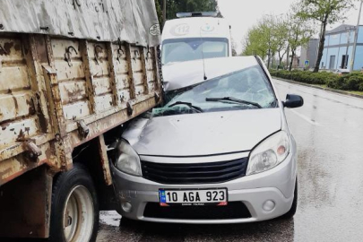 İnegöl'de yağışta kayan otomobil kamyona çarptı: 1 yaralı