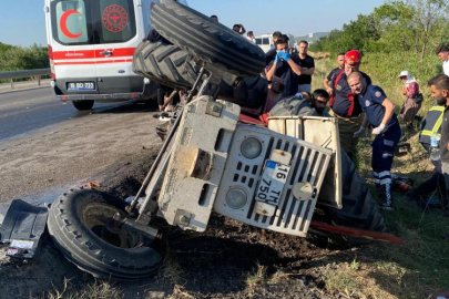 Edinilen bilgiye göre, saat 17.45 sıralarında Harmanlı Mahallesi yakınlarında, Balıkesir istikametinden Bursa yönüne seyir halinde olan Mehmet Emin A.'nın kullandığı 33 AZT 075 plakalı çekici, Hüseyin Ş. (64) yönetimindeki 16 TM 750 plakalı traktöre çarptı. Çarpışmanın etkisiyle devrilen traktörün sürücüsü yaralandı. Yaralı, ambulansla Karacabey Devlet Hastanesi'ne kaldırılarak tedavi altına alındı.