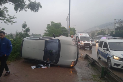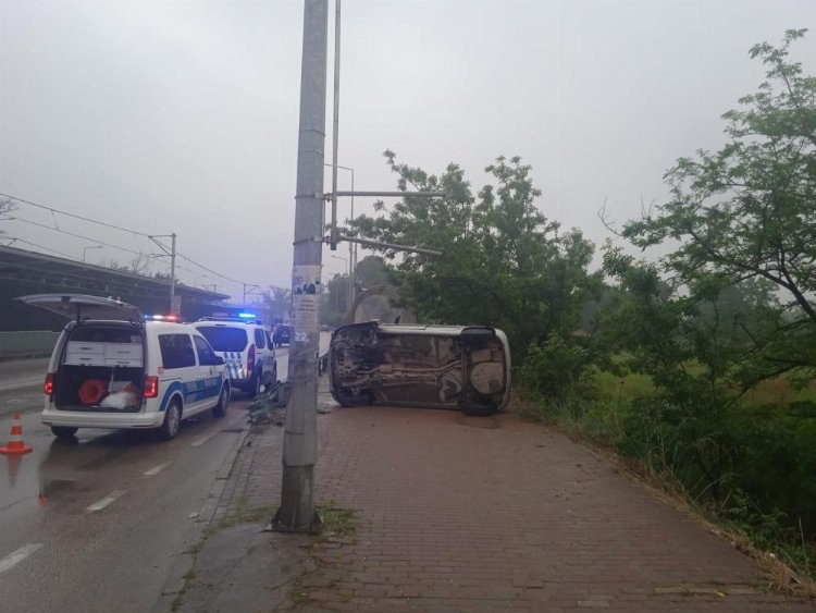 Bursa'da sürücünün kontrolünden çıkan otomobil yan yattı. Sürücü otomobilden çevredeki vatandaşlar tarafından çıkarıldı.