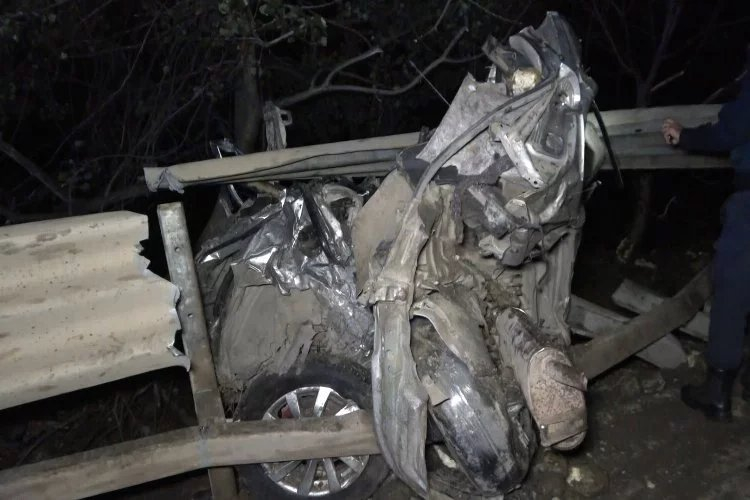 Bursa’da şeker pancarı yüklü tır yokuş aşağı freni patlayınca sürücüsünün kontrolünden çıkıp 2 kişinin bulunduğu otomobile çarptı. 400 metre savrulan tırda sürücü hayatını kaybederken, kağıt gibi ezilen otomobilde bulunan 2 kişi ağır yaralandı.