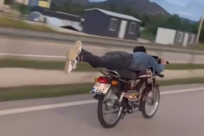 Tokat'ın Turhal ilçesinde seyir halindeyken motosikletlerin üzerine uzanarak ilerleyen sürücülerin tehlikeli yolculukları cep telefonu kamerasına yansımıştı.