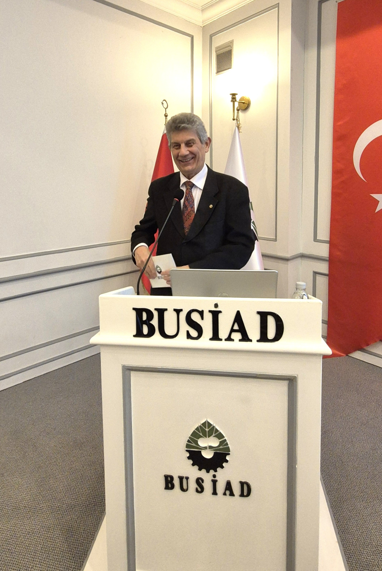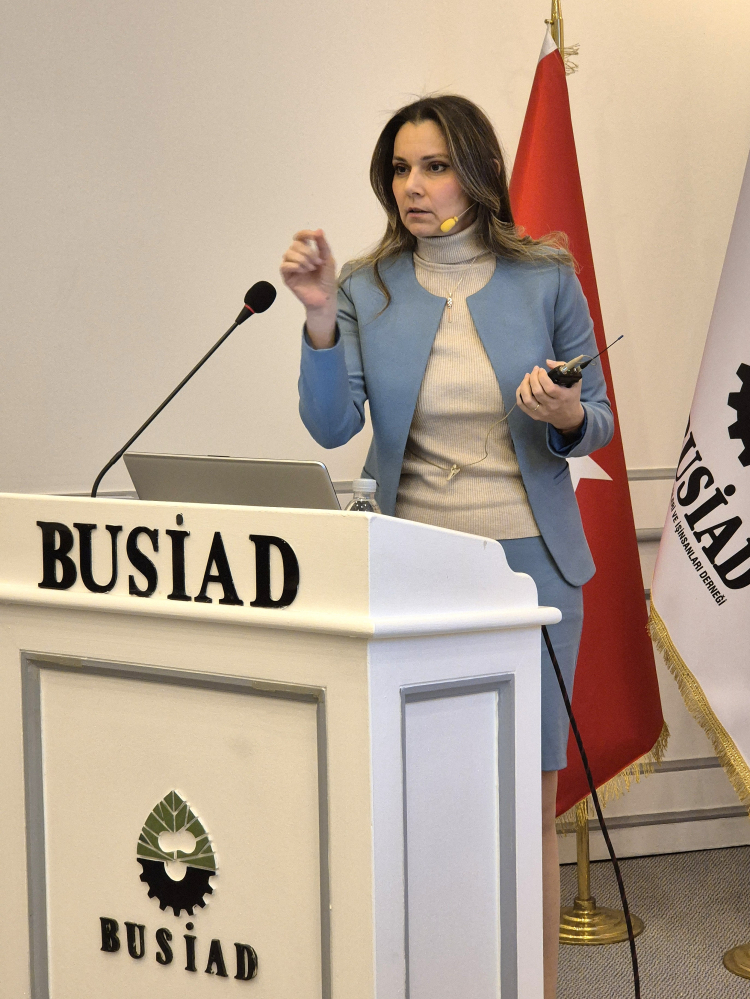TÜSİAD Yönetim Kurulu Başkanı Orhan Turan, TÜSİAD Yönetim Kurulu Başkan Yardımcısı Serpil Veral ve MARSİFED Başkanı Osman Akın’ın da katıldığı etkinlikte. TÜSİAD Başekonomisti Gizem Öztok Altınsaç. “Ekonomik görünüm 2025” başlıklı bir sunum gerçekleştirdi.