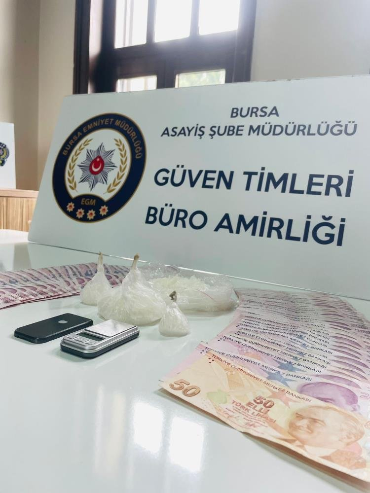 Bursa'da suça ve suçluya göz açtırmayan Güven Timleri, durumundan şüphelendiği şahsa yaptığı kaba üst aramasında 171,66 gram uyuşturucu, 15 bin 50 TL nakit para ile hassas terazi ele geçirdi. Gözaltına alınan şüpheli şahıs emniyetteki sorgusunda 'Kurban keseceğim, yetişir miyim?' demesi polisi bile şaşırttı.