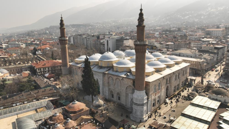 626 yıllık Ulu Cami'ye Ramazan mahyası asıldı