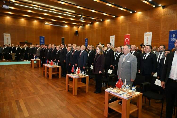 Açılış konuşmalarının ardından Türkiye Kentsel Tesis Yönetim Derneği Genel Başkanı Suat Sandalcı, Büyükşehir Belediye Başkanı Alinur Aktaş ve Bursa Milletvekili Mustafa Varank’a günün anısına tablo hediye etti.