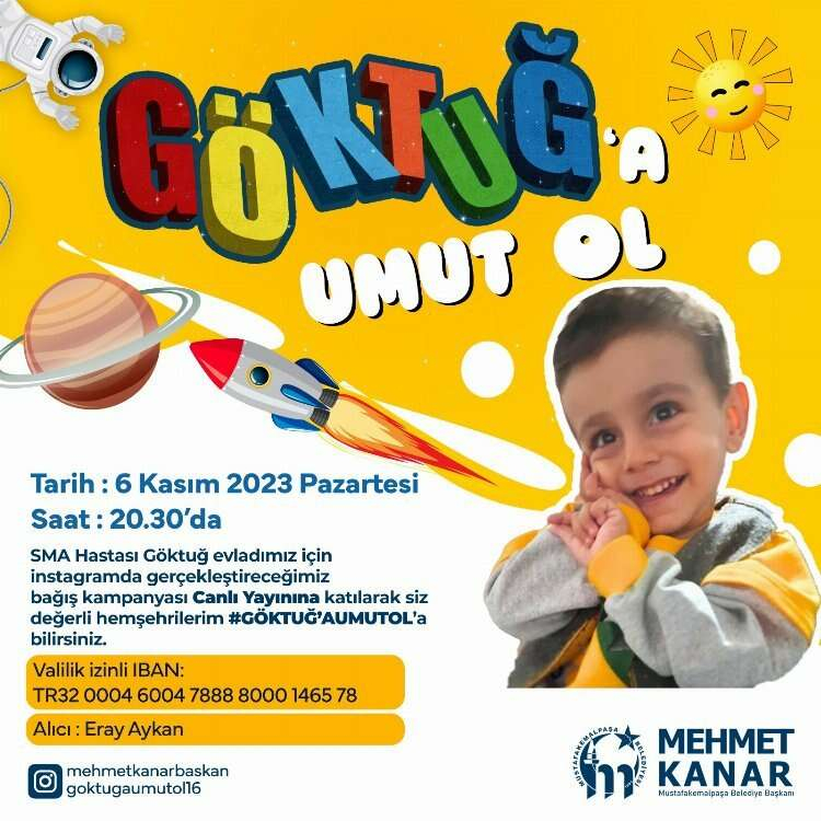 Mustafakemalpaşa Belediye Başkanı Mehmet Kanar, SMA Hastası Göktuğ Aykan’a destek için başlatılan canlı yayın konuğu olarak ‘’Her şey Göktuğ için’’ ifadelerini kullandı.