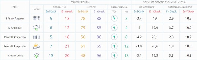 Parçalı ve çok bulutlu, aralık yağmur ve sağanak yağışlı geçeceği tahmin ediliyor. Yağışların yer yer kuvvetli olması bekleniyor.