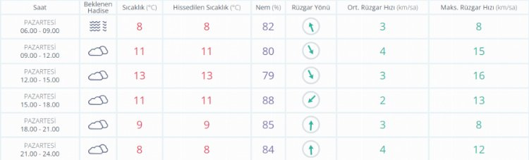 Parçalı ve yer yer çok bulutlu, Muğla, Denizli, Uşak, Aydın ve Afyonkarahisar çevreleri aralıklı sağanak yağışlı geçeceği tahmin ediliyor. Yağışların Muğla kıyılarında yer yer kuvvetli olması bekleniyor. Sabah ve gece saatlerinde iç kesimlerin puslu yer yer sisli geçeceği bekleniyor.