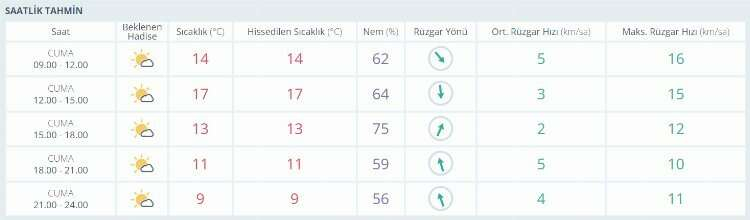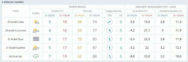 5 GÜNLÜK TAHMİN