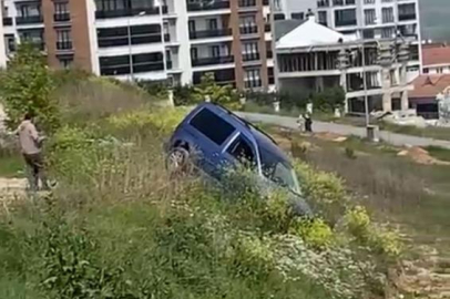 Bursa'da el freni çekilmeyen otomobil, bir süre sonra kendi kendine hareket ederek şarampole uçtu. Yaşanan olayda şans eseri yaralanan olmadı.