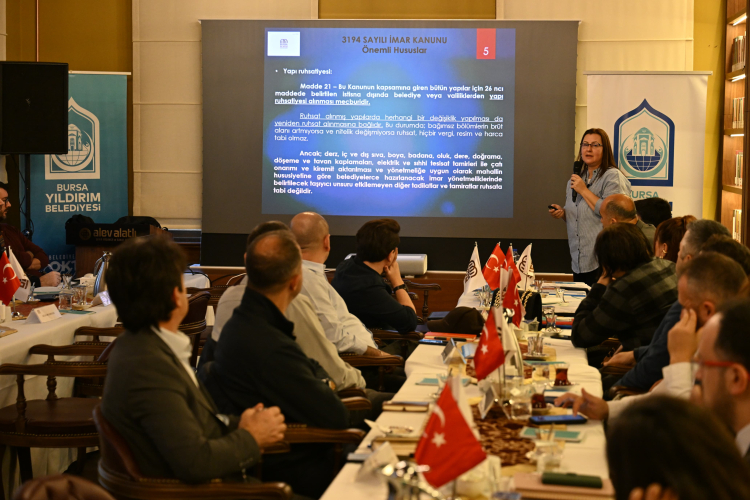Bursa’da ruhsatsız ve ruhsat hilafı olan yapılaşmaya yönelik çalıştay Bursa Belediyeler Birliği ev sahipliğinde gerçekleştirildi. Bursa Belediyeler Birliği’nin merkezi olan Alev Alatlı Şehir Düşünce ve Sanat Merkezi’nde yapılan toplantıya Bursa Belediyeler Birliği ve Yıldırım Belediye Başkanı Oktay Yılmaz ile üye belediyelerin yapı kontrol müdürleri ve ilgili başkan yardımcıları katıldı. İstişare toplantısında şehir planlama ve imar uygulamaları konusu detaylı bir şekilde ele alındı. Kurum temsilcileri, ilçelerdeki mevcut durum hakkında bilgi verirken, karşılaşılan sorunlar ve çözüm önerileri masaya yatırıldı.