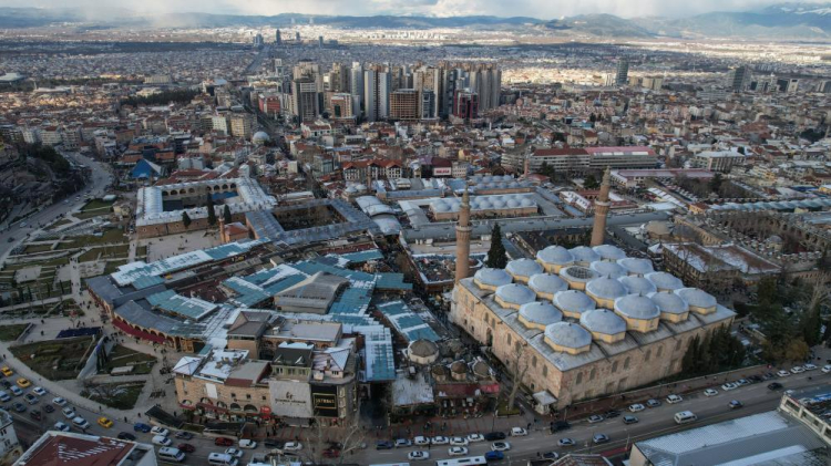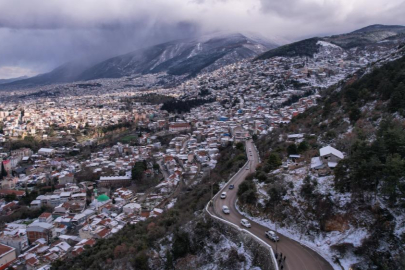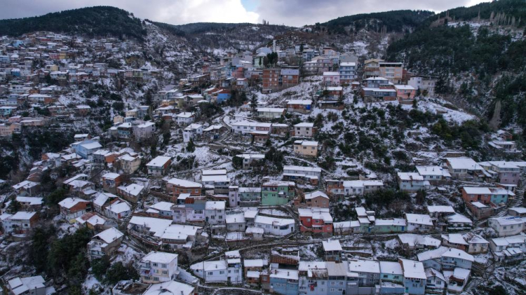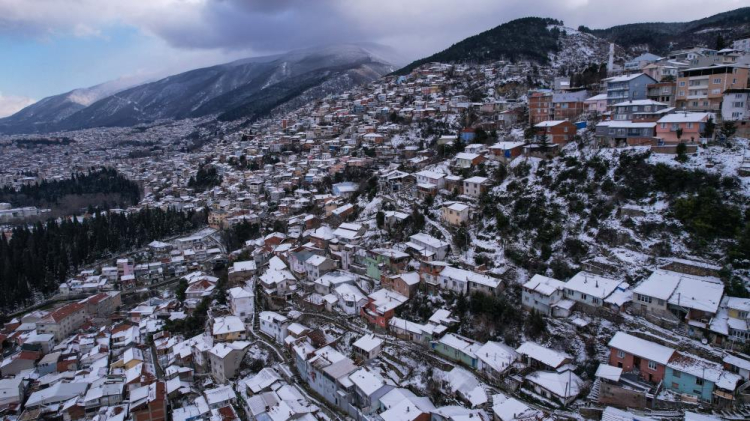 Bursa'da aralıklara devam eden kar yağışının dinmesinin ardından kartpostallık görüntüler ortaya çıktı. Şehrin yüksek yerlerinden Ulucami ve Uludağ'ın muhteşem görüntülerine yamaçlardaki rengarenk evler eşlik etti. Bu güzel manzara havadan görüntülendi.