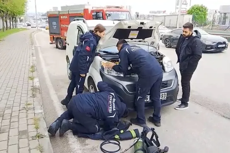 Bursa'da seyir halindeyken aracından kedi sesi duyan vatandaş, durumu itfaiyeye bildirdi. Aracın motorunda bir süre seyreden kedi, itfaiye ekiplerince sıkıştığı yerden çıkarıldı.