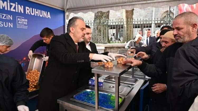 Bursa’da cuma namazı öncesinde eller şehitlerimiz için semaya kalkarken, Bursa Büyükşehir Belediyesi tarafından da namaz sonrası 5 bin kişiye lokma dağıtıldı.