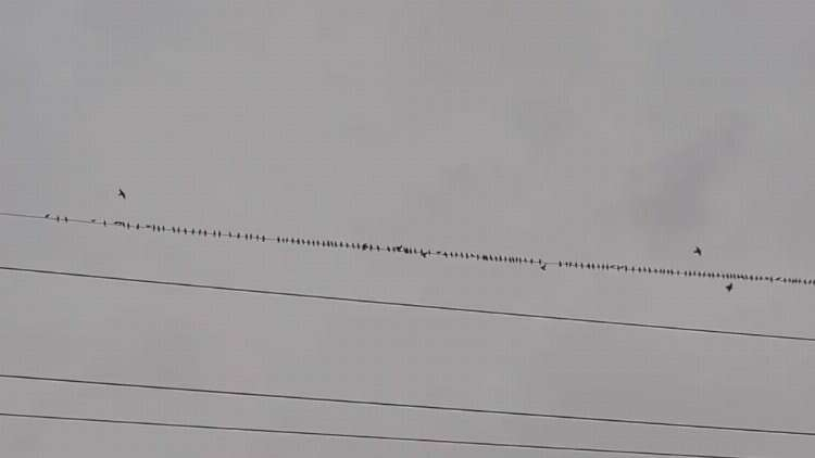 Bursa’da elektrik direklerine sürü halinde konan sığırcık kuşları ilginç görüntüler oluşturdu.