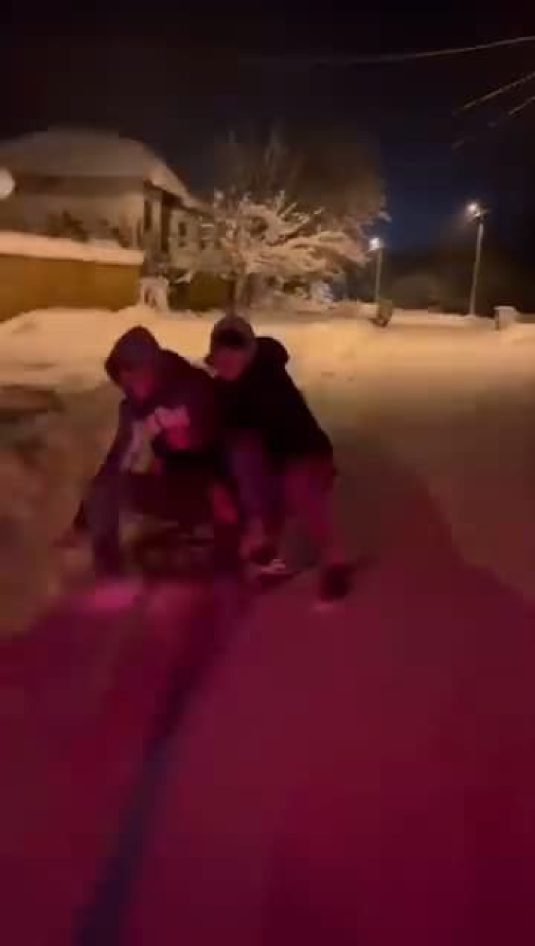 Çocuklar kartopu oynarken, bazıları da aracın arkasında bağladığı kızak ile kayak yaptılar.