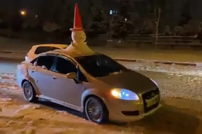 İnegöl'ün TOKİ konutlarındaki gençler araç üzerine yaptıkları kardan adam ile şehir turu atarken, Fatih Mahallesi'nde bulunan altgeçitte ise sürücüler zor anlar yaşadı.