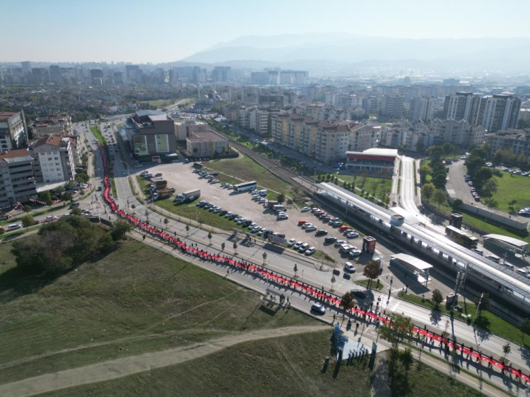 Bursa'da yüzlerce öğrenci 500 metrelik dev bayraklı kortej yapıp teröre lanet, yaşasın Cumhuriyet yürüyüşü gerçekleştirdi. Cumhuriyet Bayramı öncesi TUSAŞ'a yapılan hain saldırıyı da kınayan öğrenciler ellerinde bayraklarda okullarından çıkıp Ahmet Taner Kışlalı ve Özlüce Bulvarında yürüyüş gerçekleştirdi.