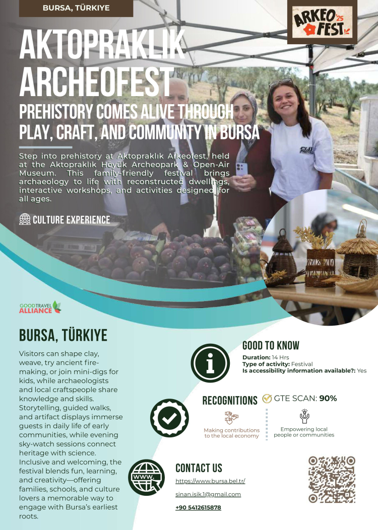 Good Travel Experiences rehberinde yer almak, Bursa’nın yalnızca geçmişine değil, geleceğine de sahip çıkan bir turizm anlayışının uluslararası düzeyde tescillenmesi anlamına geliyor. Bu başarı, Bursa’nın doğa, kültür ve insanı merkeze alan bütüncül yaklaşımıyla, geleceğin sorumlu turizm destinasyonları arasında öncü bir konum edindiğini bir kez daha ortaya koyuyor. Bursa Leylek Şenliği, doğa temelli turizmin en özgün örneklerinden biri olarak biyolojik çeşitlilik ve kuş göçü farkındalığını artırırken; Aktopraklık Arkeofest, arkeolojik mirası halkla buluşturan, çocuklara ve gençlere yönelik interaktif öğrenme deneyimleriyle kültürel sürdürülebilirliği güçlendiriyor.