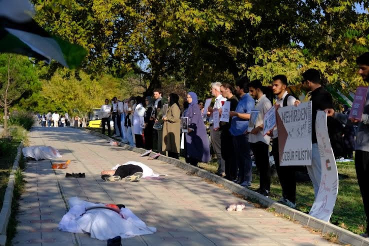 Özellikle son 1 yıldır Filistin halkına karşı artarak devam eden İsrail saldırılarının yıldönümünde, Uludağ Üniversitesi Tıp Fakültesi öğrencileri yaptıkları eylemle zulüm altında görevlerini yapmaya çalışan sağlık çalışanları ve basın mensuplarının yaşadıkları insani zorluklara dikkat çektiler. Gazze’de yaşanan savaş ortamını simülasyonla canlandırmak üzere düzenlenen alana kana bulanmış çocuk kıyafetleri, oyuncaklar ve kefenlenmiş sağlık çalışanları ile basın mensupları yerleştirildi. Ses sistemi yardımı ile bomba, füze ve silah seslerinin yankılandığı alanda yaklaşık 2 saat süren eylem büyük ilgi gördü.