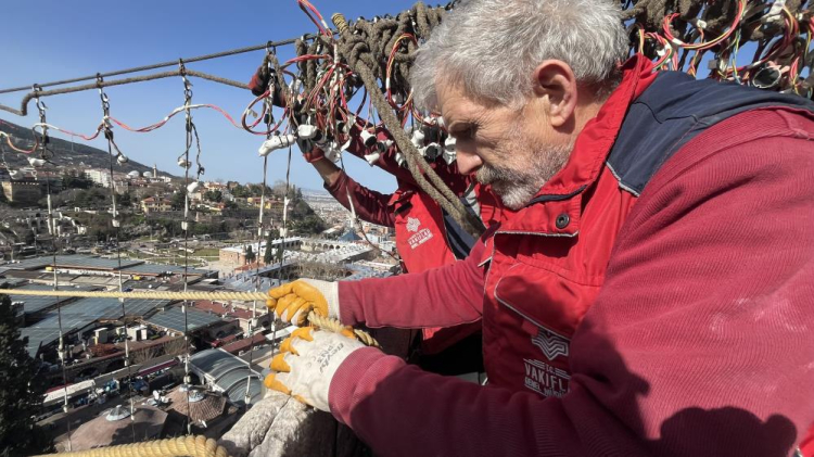 İslamiyet’in en büyük 5 mabedi arasında gösterilen 627 yıllık Bursa Ulu Cami'ye Vakıflar Genel Müdürlüğü tarafından Ramazan mahyasının asılmasına başlandı.
