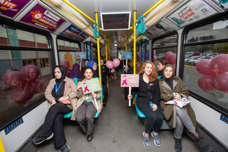 Eğitimin ardından BURULAŞ hizmet binası bahçesinde pembe balonlarla süslenen vagon, kadın vatman tarafından kısa bir mesafede kullanılarak meme kanserine dikkat çekildi. Program, pembe balonların gökyüzüne bırakılmasıyla sona erdi.