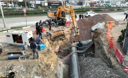 Bursa Büyükşehir Belediyesi’nin ulaşım yatırımları kapsamında yapılacak Mudanya Yolu Filament Kavşağı düzenleme çalışmaları öncesinde, alandaki altyapı hatlarının deplasesi için BUSKİ devreye girdi. Nilüfer İlçesi'nin 9 mahallesi ve Küçük Sanayi Sitesinin tamamında su kesintisine neden olacak çalışma için tüm hazırlıklarını tamamlayan BUSKİ, su kesintisinin uzamaması için 14 Ocak Cumartesi gece yarısı 60 kişilik bir ekiple, çalışmaların startını verdi. Gecenin karanlığında başlayıp, gün boyu aralıksız devam eden hummalı çalışma ile kavşak alanında kalan yaklaşık 300 metrekarelik hattın yer değişikliği başarılı bir şekilde yapıldı.