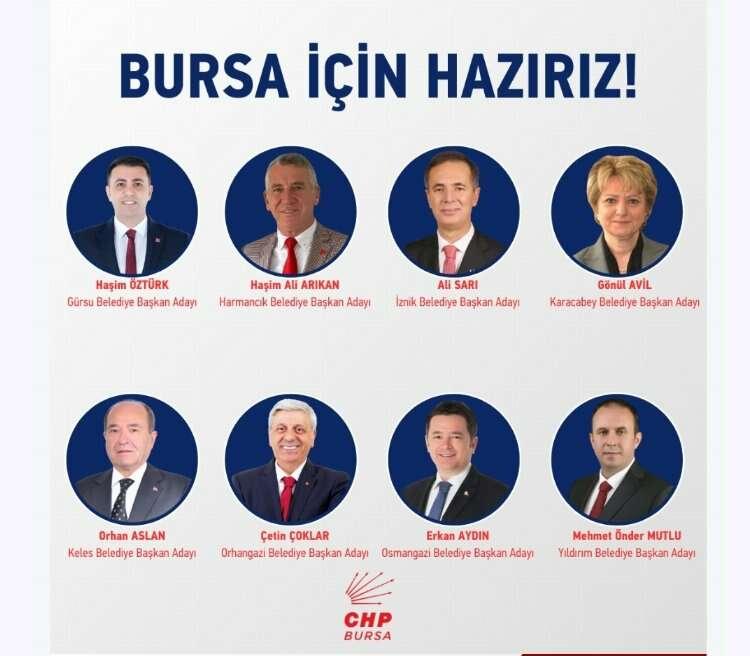 CHP Bursa'da 8 ilçe Belediye Başkan Adayı belli oldu!
