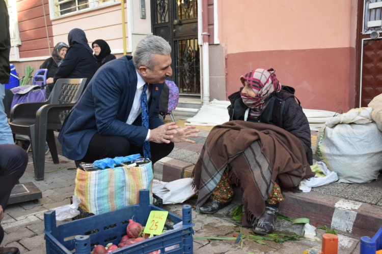 Yeşiltaş’ın Karacabey’deki üçüncü durağı ise Semt Pazarı oldu. Yeşiltaş, semt pazarında pazarcı esnafı ile alışverişe çıkan vatandaşları dinledi. Emekli vatandaşlar düşük aylıklar ile pazar arabalarını dolduramadıklarını kaydederken, asgari ücretliler de alım gücünün gün geçtikçe düştüğüne dikkat çekti.