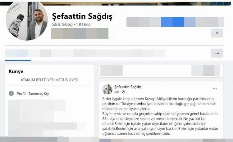 “Bizler işgale karşı direnen Kuvay-i Milliyecilerin kurduğu partinin ve o partinin de Türkiye Cumhuriyeti Devletini kurduğu gerçeğine inanarak mücadele eden siyasetçileriz. Böyle temiz ve onurlu geçmişe sahip olan bir yapının genel başkanının 85 milyon kardeşimize selam vermesini beklerdik. Ne yazık ki bu olmadı. ‘Bizim için içerde yatan’ diye ifade ettiğiniz şahıs sizin için yatabilir. Benim için asla yatmıyor sayın başkan. Bizim için yatanlar vatan uğrunda canını feda etmiş şehitlerimizdir.”