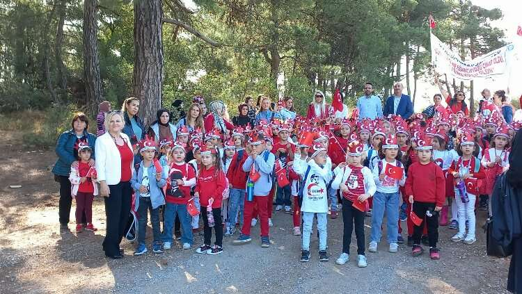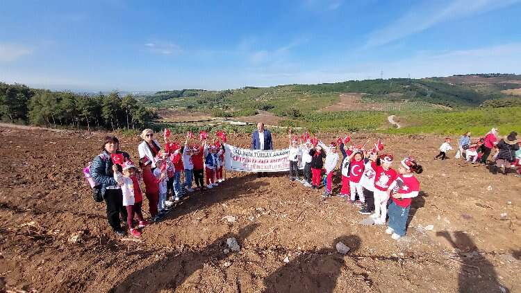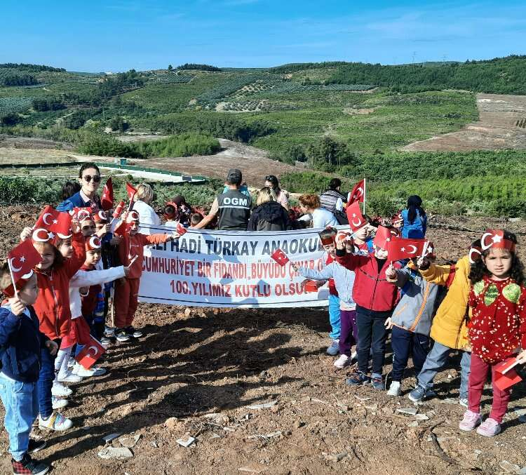 Anaokulu öğretmenlerinin düzenlediği “Cumhuriyet Bir Fidandı, Büyüdü Çınar Oldu” sloganıyla yola çıkılan proje Orman Genel Müdürlüğünün katkılarıyla Ahmetbey Köy’deki ağaçlandırma alanında hayat buldu. Projeye Bursa Orman Genel Müdürlüğü 100 fidan ve ekipmanlarıyla destek verdi.