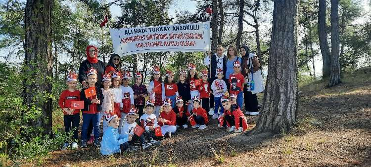 Ali Hadi Türkay Anaokulu’nun minik kalpleri Cumhuriyetimizin 100. Yılında 100 fidanı toprakla buluşturdu.