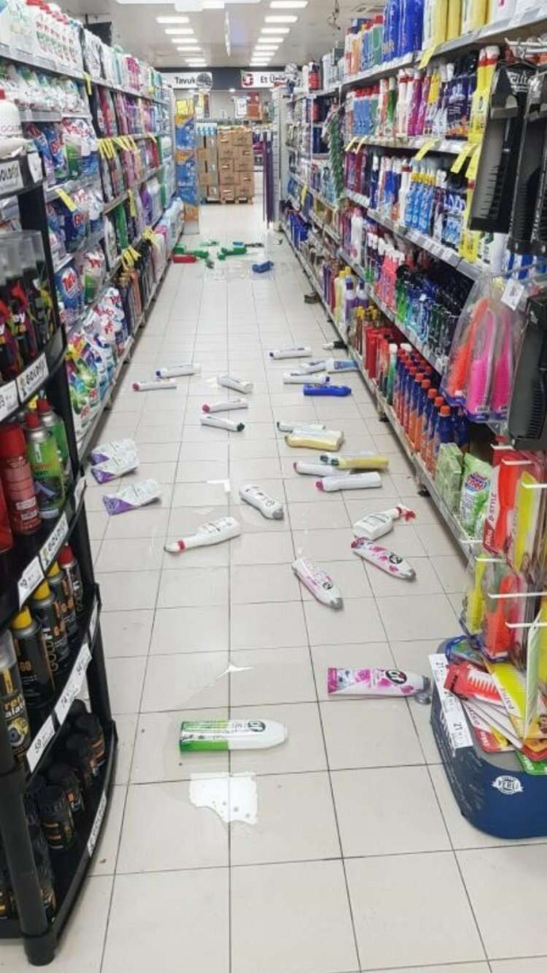 Bir marketin raflarındaki ürünler yerlere saçılırken, bazı binalarda çatlaklar meydana geldi. Vatandaşlar Gemlik ve Mudanya'da bakanlık ve yerel yönetimlerin adım atması gerektiğini kaydettiler.