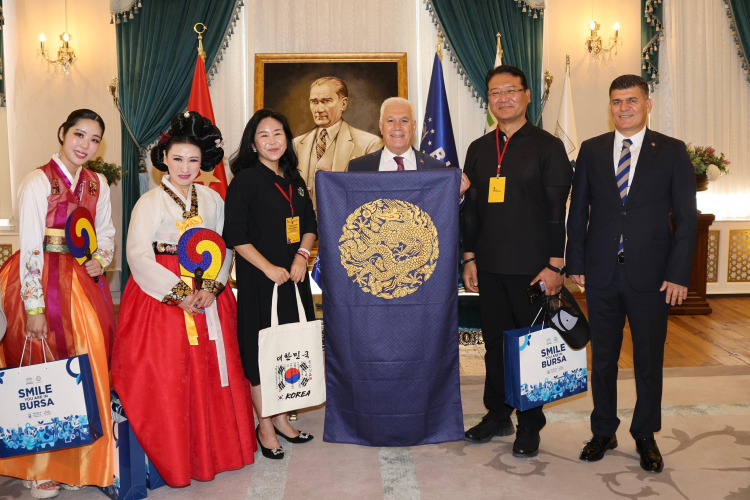 Bursa Büyükşehir Belediyesi adına Bursa Kültür Sanat ve Turizm Vakfı (BKSTV) tarafından düzenlenen 37. Uluslararası Altın Karagöz Halk Dansları Yarışması'na katılan ülkelerin temsilcileri ve yarışmanın jüri üyeleri, Bursa Büyükşehir Belediye Başkanı Mustafa Bozbey’i Tarihi Belediye Binası’nda ziyaret etti. Arjantin, Bulgaristan, Çin, Güney Kore, Gürcistan, İspanya, Kazakistan, Kuzey Kıbrıs Türk Cumhuriyeti, Kolombiya, Kuzey Makedonya, Meksika, Mısır, Panama, Porto Riko, Rusya, Yunanistan’dan gelen ekiplerin yanı sıra 25 yerel halk dansları topluluğunun temsilcileri de ziyarette yer aldı.