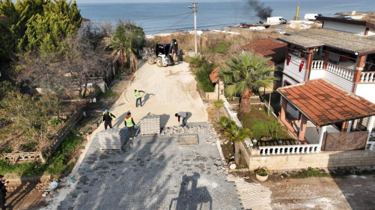 Bursa Büyükşehir Belediyesi, 17 ilçedeki yatırım seferberliği çerçevesinde Gemlik’in Gençali Mahallesi Kumsaz mevkii ve Gemlik merkezdeki mahallelerde kanalizasyon, yağmur suyu hattı ve parke taşı imalatlarına devam ediyor.