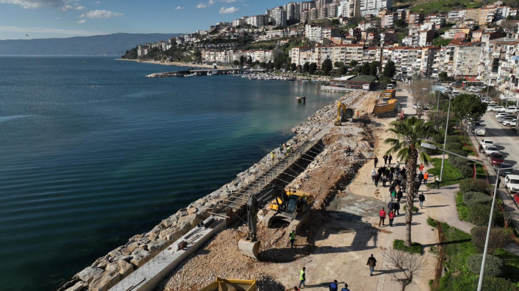 Büyükşehir Belediyesi tarafından Gemlik Körfezi kıyı bandında 47 bin metrekarelik alanda yürütülen çalışmalarla, sahil hattı deniz taşkınlarına karşı korunurken, bölgeye modern sosyal yaşam alanları kazandırılıyor.